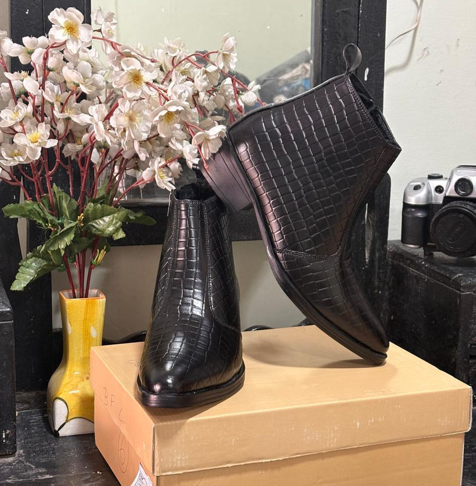 Crafted from high-quality croc textured leather, these boots strike the balance between rugged edge and refined style. Featuring a flexible sole and easy side elastic panels, they're build for all-day comfort and effortless slip-on wear.